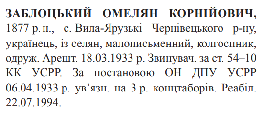 Реабілітований: Вінницькою облпрокуратурою 22.07.1994