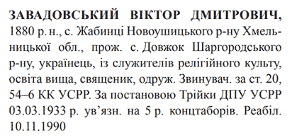 (Можливий варіант написання прізвища: Завадовський) Реабілітовані історією