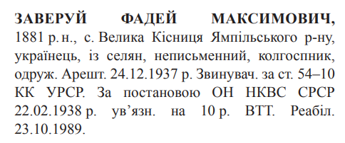 (Можливий варіант написання прізвища: Заверуя) Реабілітовані історією