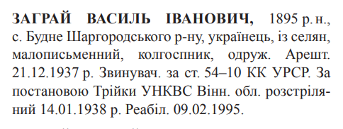 (Можливий варіант написання прізвища: Заграя) Реабілітовані історією