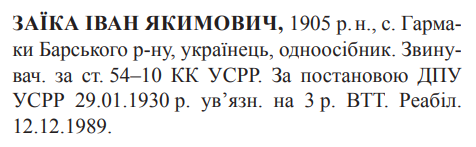 Реабілітований: Вінницькою облпрокуратурою 12.12.1989 р. Реабілітовані історією