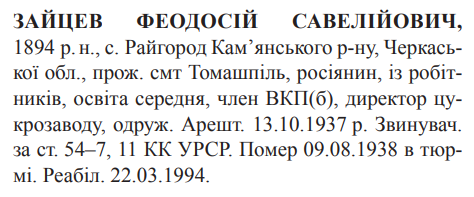 Реабілітований: Вінницькою облпрокуратурою 22.03.1994 Реабілітовані історією