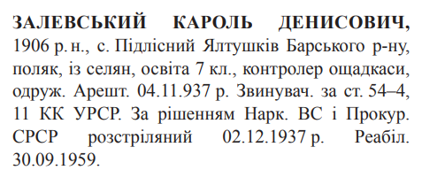 Кароль Залевський розстріляний 02.12.1937