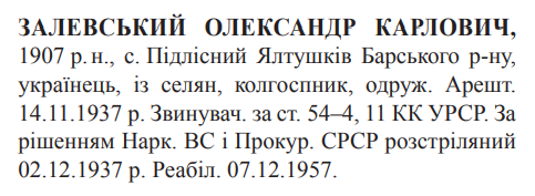 Реабілітований: Верховним судом УССР 07.12.1957 Реабілітовані історією