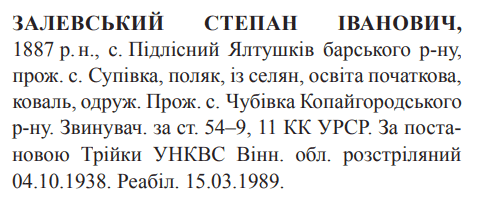 Реабілітований: Вінницьким облпрокурором 15.03.1989 Реабілітовані історією