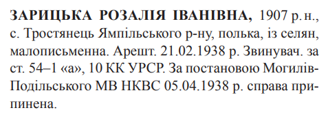 54-10 КК УССР. Могилів-Подільським районним відділом НКВД справу припинено