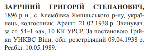 Реабілітований: Вінницькою облпрокуратурою 10.05.1989 Реабілітовані історією