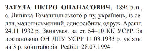 Реабілітований: Вінницькою облпрокуратурою 28.07.1994 Реабілітовані історією