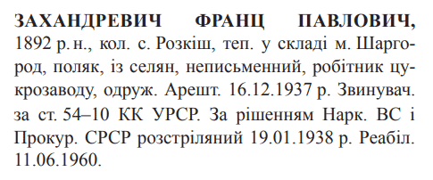 Реабілітований: Верховним судом УССР 11.06.1960 Реабілітовані історією