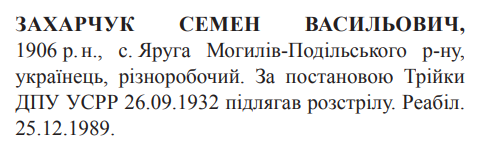 Реабілітований: Військовою прокуратурою Прикарпатського ВО 25.12.1989 Реабілітовані історією