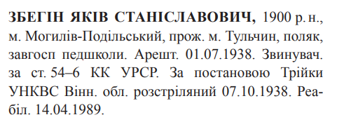 Яків Збєгін розстріляний 07.10.1938