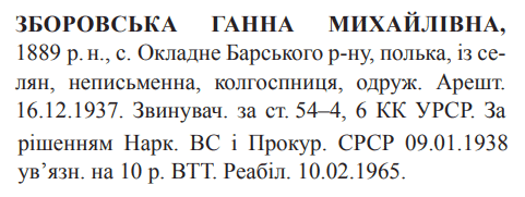 Реабілітована: Вінницьким облсудом 10.02.1965 Реабілітовані історією