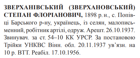 Реабілітований: Вінницьким облсудом 17.10.1956 Реабілітовані історією