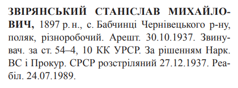 Станіслав Звірянський розстріляний 27.12.1937