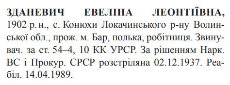 Евеліна Зданевич розстріляна 02.12.1937