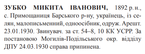 54-8, 54-10 КК УССР. Могилів-Подільським окружним відділом ДПУ справу припинено