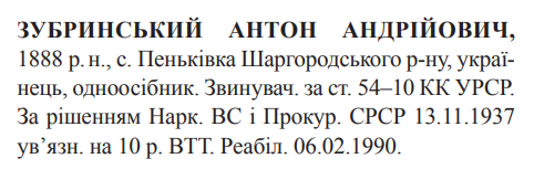 54-10 КК УССР. Наркомом ВС і Прокурором СССР засуджений до 10 років ВТТ