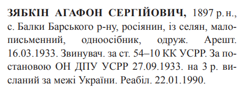 (Можливо Зябченко Агафон Сергійович) Реабілітовані історією