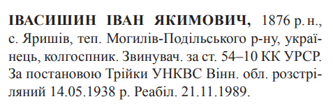Реабілітований: 21.11.1989 Реабілітовані історією