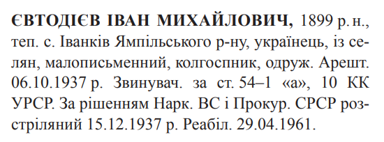Реабілітований: Верховним судом УССР 29.04.1961 Реабілітовані історією