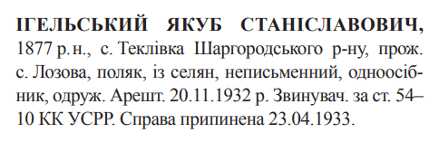 54-10 КК УССР. Вінницьким обласним відділом ДПУ справу припинено