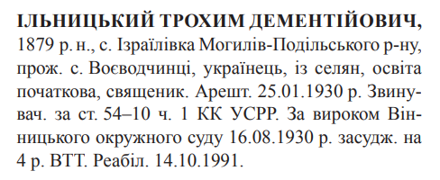 Реабілітований: Вінницьким облпрокурором 14.10.1991 р.