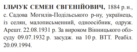 Реабілітований: Вінницьким облпрокурором 20.09.1994 Реабілітовані історією