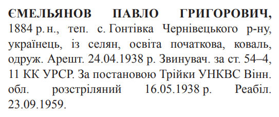Реабілітований: Вінницьким облсудом 23.09.1959 Реабілітовані історією