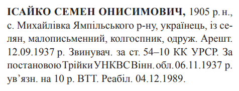 Реабілітований: Вінницьким облпрокурором 04.12.1989 Реабілітовані історією
