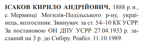 Реабілітований: 11.10.1989 Реабілітовані історією