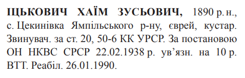 20-50-6 КК УССР. ОН НКВД СССР засуджений до 10 років ВТТ