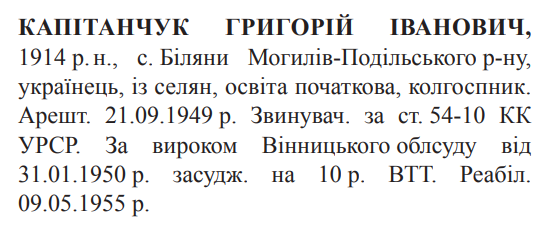54-10 КК УССР. Вінницьким облсудом засуджений до 10 років ВТТ