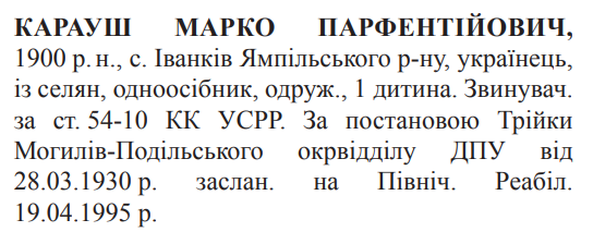 інформація відсутня. Могилів-Подільською окружною трійкою ДПУ засуджений до вислання