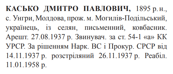 Реабілітований: Верховним судом УССР 11.01.1958 р. Реабілітовані історією