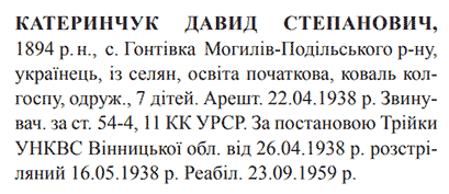 Давид Катеринчук розстріляний 16.05.1938