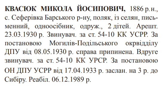 Прокуратурою Вінницької обл. 06.12.1989 Реабілітовані історією