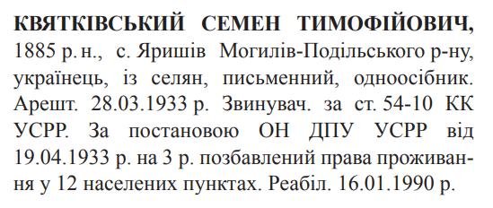 Реабілітований: Вінницьким облпрокурором 16.01.1990 Реабілітовані історією