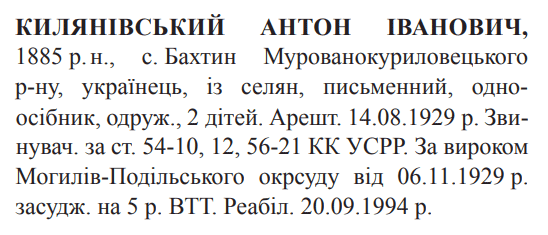 Реабілітований: Вінницькою облпрокуратурою 20.09.1994 Реабілітовані історією
