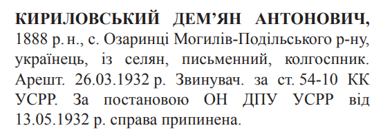 (Можливий варіант написання прізвища: Кирилівський) Реабілітовані історією
