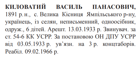 Реабілітований: Вінницьким облсудом 09.02.1966