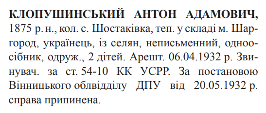(Можливий варіант написання прізвища: Клапушинський) Реабілітовані історією