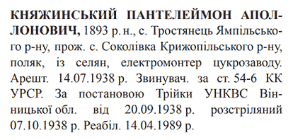 Пантелеймон Княжинський розстріляний 07.10.1938