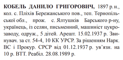 Реабілітований: Вінницькою облпрокуратурою 28.08.1989 Реабілітовані історією