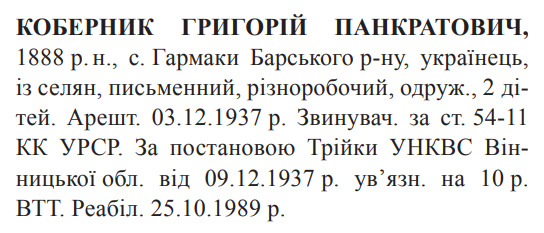 Реабілітований: Вінницьким облпрокурором 25.10.1989 р. Реабілітовані історією