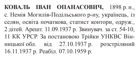 Іван Коваль розстріляний 16.11.1937