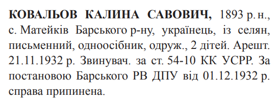 54-10 КК УССР. Барським районним відділом ДПУ справу припинено