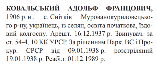 Адольф Ковальський розстріляний 19.01.1938