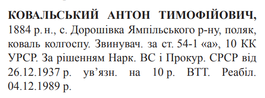 Реабілітований: 04.12.1989 Реабілітовані історією
