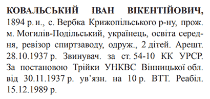 54-10 КК УССР. Трійкою УНКВС Вінницької обл. засуджений до 10 років ВТТ