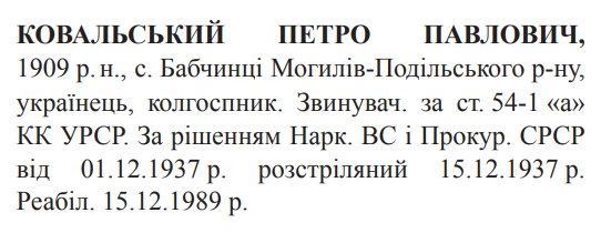 Петро Ковальський розстріляний 15.12.1937